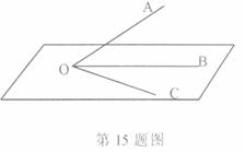 如图,在自空间一点O出发引三条射线OA,OB,OC中,平面OAB垂直于平面OBC,设直线OA和平面OBC所成的角为θ;![]()