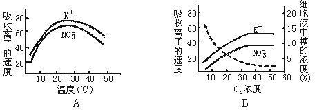 38.(创新题)下图中,A、B两图分别是温度和氧浓度对小麦根系吸收K+、NO