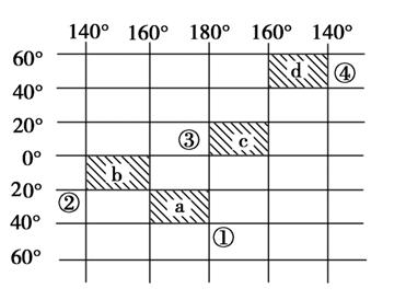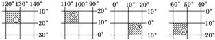 6.在四幅图中斜线所表示的经纬线方格内,面积最大的是