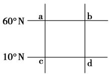 右图中ac、bd为两条经线,它们与两条纬线共同组成一个正方形,读图回答16-17题。