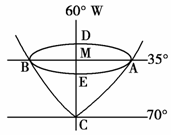某航空大队搞模拟飞行,计划从B地飞往A地,此时的昼夜状况如右图所示,图中