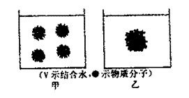 (1)等量亲水性不同的两种物质分散在甲、乙两个含有等量水的容器中,如上图所示。比较两容器中的自由水含量,乙比甲 。