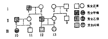 (2分);只患一种病的概率为 (2分);同时患有两种病的男孩的概率为 。(2分)