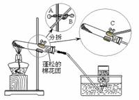④将药品平铺于干燥试管底部,在导管口放置蓬松的棉