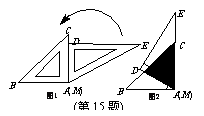 将一副三角板按如图1位置摆放,使得两块三角板的直角边AC和MD重合.已知AB=AC=8 cm,将△MED绕点A(M)逆时针旋转60°后(图2),两个三角形重叠(阴影)部分的面积是 ▲ cm2