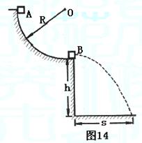 (2)物块B离开圆弧轨道最低点后作平抛运动,设其飞行时间为t,离开圆弧轨道下端时的速度为v2,则