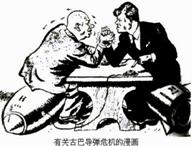 右图是反映1962年古巴导弹危机的漫画。漫画中的两个人是
