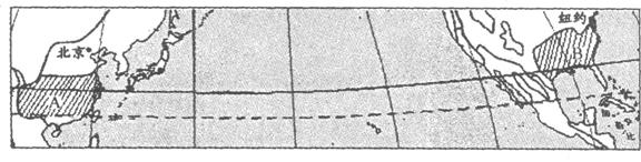 下图是“世界上某种气候类型在亚洲、北美洲的分布示意图”(斜线部分),读图完成下列各题。(8分)