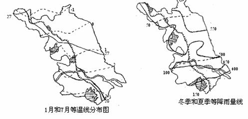 下图为我国某省的等温线(℃)和等降雨量线(mm)分布图,读图完成下列要求:(11分)