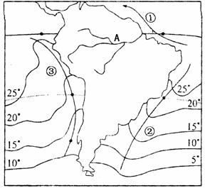 (2)图中①、②、③三支洋流中, (填数字代码)洋流沿岸有荒漠景观, (填数字代码)洋流附近有大渔场。