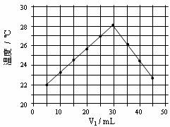 1.(07年广东化学·14)将V1mL1.0mol·L-1 HCl溶液和V2mL未知浓度的NaOH溶液混合均匀后测量并记录溶液温度,实验结果如右图所示(实验中始终保持V1+V2=50mL)。下列叙述正确的是