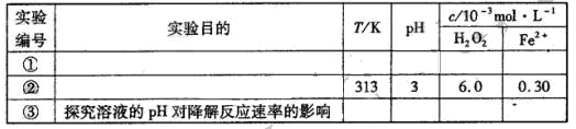 解析:(1)实验①是参照实验,所以与实验①相比,实验②和③只能改变一个条件,这样才能起到对比实验的目的,则实验②是探究温度对反应速率的影响,则T=313K,pH=3,c(H2O2)=6.0