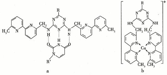 或Cu(I)(I表示化合价为+1)时,分别形成a和b: