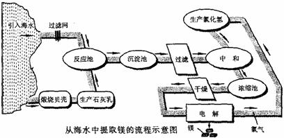 3、(2008·南京)镁合金的强度高、机械性能好。这些特性使金属镁成为制造汽车、飞机、火箭的重要材料,从而获得“国防金属”的美誉。海水提镁是国际上的主要趋势,工业流程图如下;