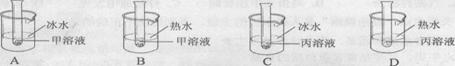 (3)在室温时,将盛有甲、丙两物质的饱和溶液的试管各两支,分别放入盛有冰水或热水的烧杯中。根据甲、丙两物质的溶解度曲线判断,下图试管内所示现象正确的是 ________(填序号)。