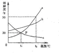 A.在t1℃时,a的溶解度等于c的溶解度