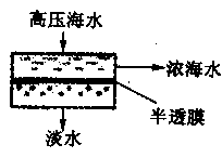 (2009·舟山模拟)嵊泗是个易旱缺水的海岛县.现在依靠海水淡化技术,每天可生产6600吨淡水,解决了缺水问题。该技术(原理如图所示)采用对海水加压,海水中的溶剂分子可以通过半透膜,而溶质分子很难透过。下列说法正确的是( )