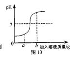 20、(2009·河北)在用稀盐酸和氢氧化钠溶液进行中和反应实验时,反应过程中溶液的酸碱度变化如图13所示。