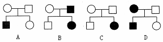 11、下列有关人类遗传病的系谱图(图中深颜色表示患者)中,不可能表示人类红绿色盲遗传的是 ( )
