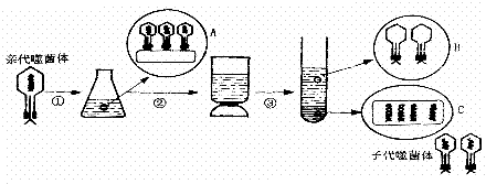 44、(10分)下图为用含32P的T2噬菌体侵染大肠杆菌的实验。据图回答下列问题: