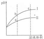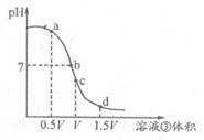 pH值随溶液体积变化的曲线如右图所示。下列判断不
