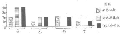 24.下图中甲-丁为小鼠睾丸中细胞分裂不同时期的染色体数、染色单体数和DNA分子数的比例图,关于此图叙述中正确的是 ( )