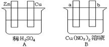 (1)在A图中,使铜片上冒H2气泡。请加以必要连接,则连接后的装置叫 。电极反应式:锌极: ;铜极: 。
