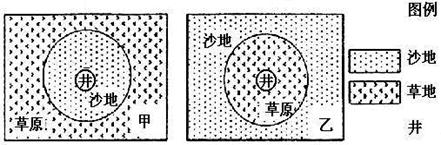 甲地以井为中心在草原上形成沙地,其原因可能是 ( )