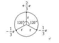 9.如图所示,中子内有一个电荷量为 + e的上夸克和两个电荷量为 - e的下夸克,3个夸克都分布在半径为 r 的同一圆周上,则3个夸克在其圆心处产生的电场强度为( )