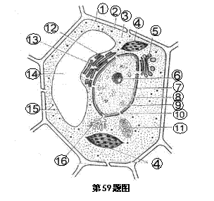 59. (7分)如图是植物细胞亚显微结构模式图,据图回答问题(请在[ ]内写出结构的标号,在横线上写有关内容):