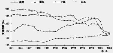 14.山东与浙江复种指数的差异,体现的地理分布规律主要是