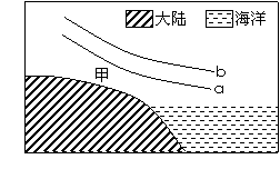 右图是“沿北纬28º纬线亚欧大陆东岸地区的剖面示意图”,图中a、b为低空等压面。读图回答19-20题。