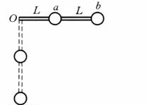 12.如图7-13-5所示,一轻质杆上有两个质量均为m的小球a、b,轻杆可绕O点在竖直平面内自由转动,Oa=ab=L,先将杆拉成水平,再静止释放,当杆转到竖直方向时,试问: