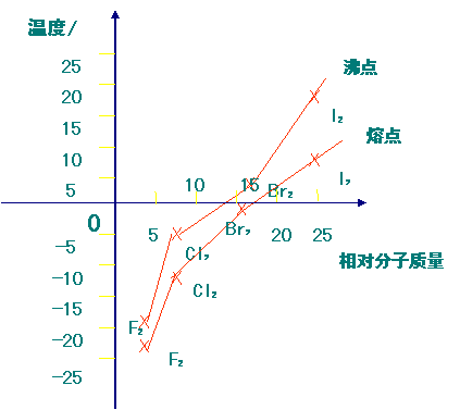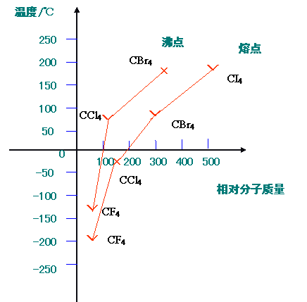 随着相对分子质量的增大,分子间作用力增大(即范德华力增大),熔沸点逐渐升高。(如下图)