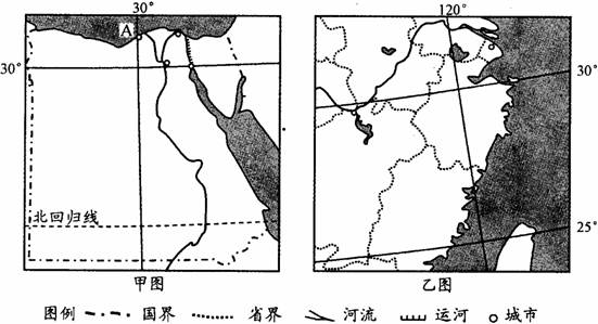 (2)简要回答甲、乙两图所示地区发展种植业气候条件的优势。(4分)