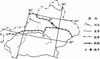 (1)图中M为第二亚欧大陆桥的一段,该铁路最东段的名称是 ,该铁路西端港口的气候类型是 。(2分)
