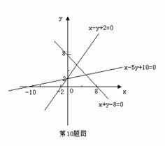 过直线x-y+2=0与直线3x-y-6=0的交点(4,6)时,