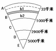 (1)根据图中深度,说出各字母表示的地球内部圈层: