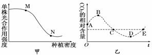 (1)探究单株番茄光合作用强度与种植密度的关系,结果如甲图所示。与M点相比,N点限制单株光合作用强度的外界因素是 和 。