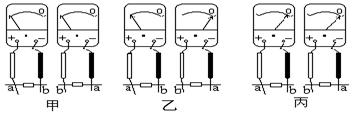 (3)用多用电表欧姆挡(×100)测试三只晶体二极管,其结果依次如图甲、乙、丙所示。由图可知,图中______的二极管是好的,该二极管的正极是____端。