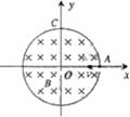 17、(13分)在以坐标原点O为圆心、半径为r的圆形区域内,存在磁感应强度大小为B、方向垂直于纸面向里的匀强磁场,如图所示。一个不计重力的带电粒子从磁场边界与x轴的交点A处以速度v沿-x方向射入