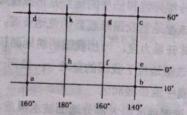 4、当c点的区时为6月22日4时时,此刻全球以哪两条经线为界分属两个日期…………( )