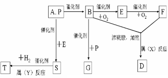 9.水蒸气跟灼热的焦炭反应,生成A和P的混合气体,它是合成多种有机物的原料气。下图是合成某些物质的路线,其中D、G互为同分异构体,G、F是相邻的同系物,B、T属同类有机物,T分子中碳原子数是B的2倍,等物质的量的T、B跟足量的金属钠反应,T产生的氢气是B的2倍,S 能跟新制Cu(OH)2反应,1mol S 能产生1molCu2O。