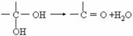 通常情况下,多个羟基连在同一个碳原子上的分子结构是不稳定的,容易自动失水,生成碳氧双键的结构: