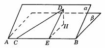 解析:60°.作DH⊥b 于H,DE⊥AB于E,连结EH,则EH是DE在平面b 内的射影.由三垂线定理的逆定理,HE⊥AB,∴ ∠DEH为二面角a