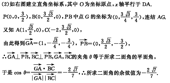 (2)求面APB与面CPB所成二面角的余弦值.