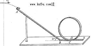 16.(11分)为了研究过山车的原理,物理小组提出了下列的设想:取一个与水平方向夹角为37°、长为L=2.0m的粗糙的倾斜轨道AB,通过水平轨道BC与竖直圆轨道相连,出口为水平轨道DE,整个轨道除AB段以外都是光滑的。其中AB与BC轨道以微小圆弧相接,如图所示。一个小物块以初速度