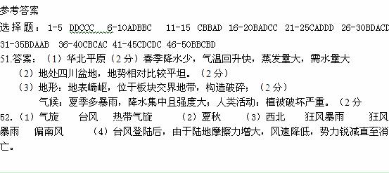 51.右图为我国春旱和滑坡、泥石流多发区分布示意图。