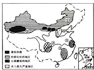 (2)图中②地区荒漠化的自然原因是___________________________________ ;
