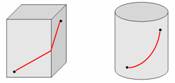 一.引入: 教师演示圆柱、棱柱表面上两点间的最短路径;